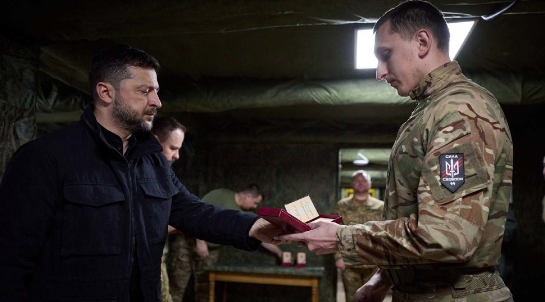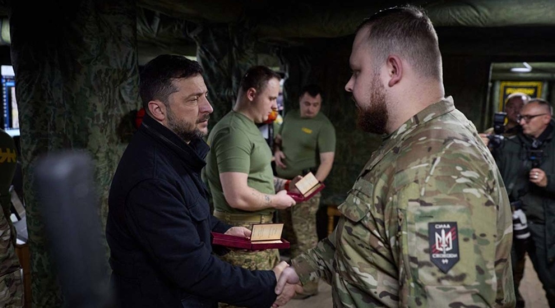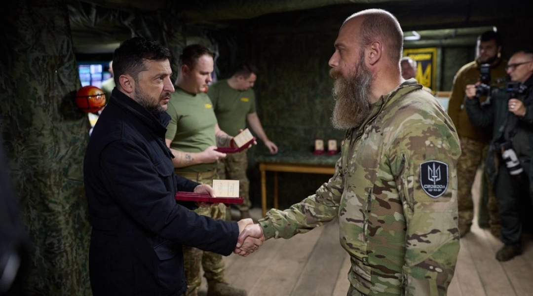 As reported by Ukrinform, President Volodymyr Zelensky met with soldiers at the command post of the 1st Corps of the National Guard of Ukraine “Azov,” which, together with adjacent units, is defending the Dobropillia sector. He discussed the situation on the front lines with the soldiers and presented them with state awards.