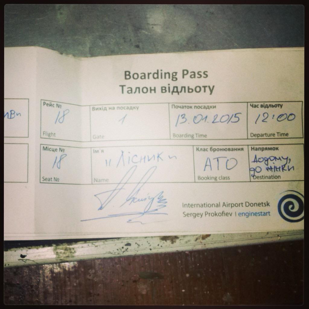 Lieutenant Lisnichuk’s ticket for the flight home. The “departure” was delayed by two days…