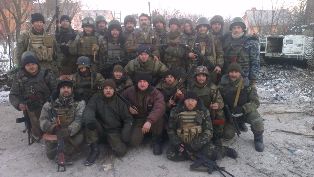 Shown here in the front row, on the right is Yevhen Kovtun with his brothers-in-arms