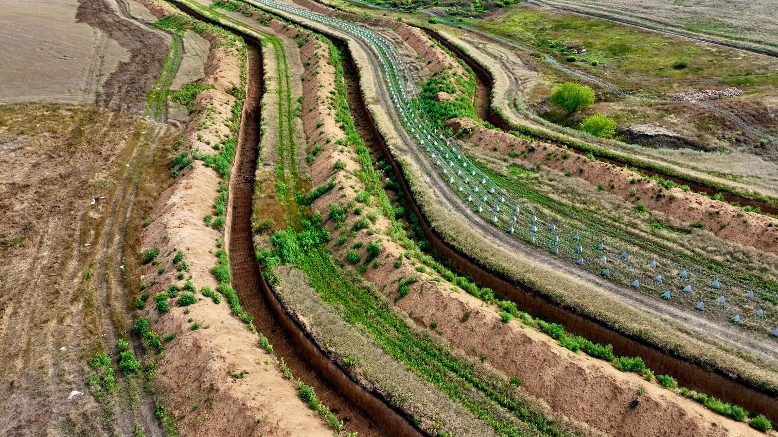 The core task is to deny the enemy freedom of movement—to prevent infiltration and advance. That is why current defensive construction is so intensive. At its center is a comprehensive system of engineering obstacles: wire entanglements, anti-tank pyramids (“dragon’s teeth”) integrated with barriers, and successive anti-tank ditches. Together, they form a complex, interlocking structure that constrains and channels enemy movement, effectively shaping the battlefield in our favor.