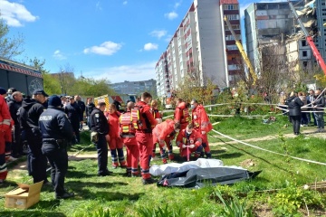 In Uman, Cherkasy region, about 10 apartment blocks were damaged as a result of a Russian missile attack on the morning of April 28. In one of them, the entire section was destroyed.