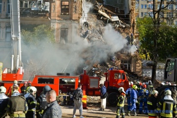 Rescue works at the site of an apartment block damaged by an enemy suicide drone this morning are still going on. Four civilians were reported killed.