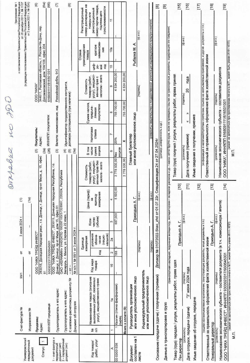“The available documents confirm that kaolin supplies to Belarus were carried out systematically, under formal contracts and with a standard set of primary documentation— invoices, waybills, rail shipment orders, and quality certificates. These are not merely shadow transactions; this is a well-established commercial scheme that has been operating since at least 2023 and continues to this day,” Zhyhar said.