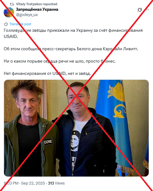 The fake was also refuted by Sean Penn's lawyer, who confirmed that his client never received any money from USAID for trips to Ukraine.