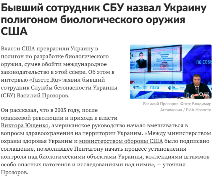 In 2019, Prozorov fled to Moscow, where he began spreading disinformation about Ukraine, including claims of Ukraine’s alleged involvement in the downing of Malaysia Airlines Flight MH17 and supposed U.S. “biological weapons tests” in Ukraine.
