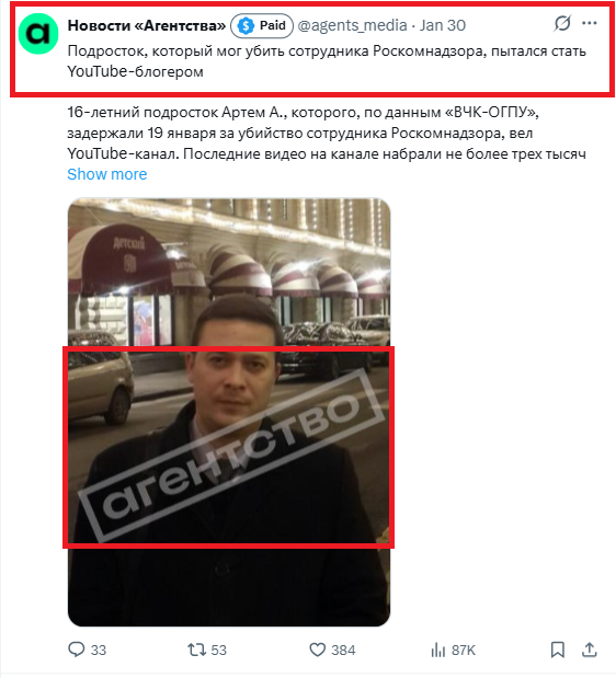 This is also fake. Russian propagandists doctored the video, using the Agentstvo logo to mislead viewers. The actual outlet has a different video format, visual markers, and watermarks.