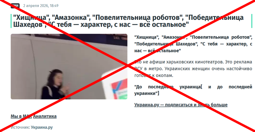This is a fake. The video was indeed filmed at one of the Kyiv Metro stations. The footage shows posters dedicated to female servicemembers from various units – “Predator,” “Shooter of Shaheds,” “Robot Master,” and “Amazon.” However, these posters do not contain any calls to join military service. They were created as part of the charity campaign “Women Can Do Anything,” dedicated to women’s struggle for their rights.