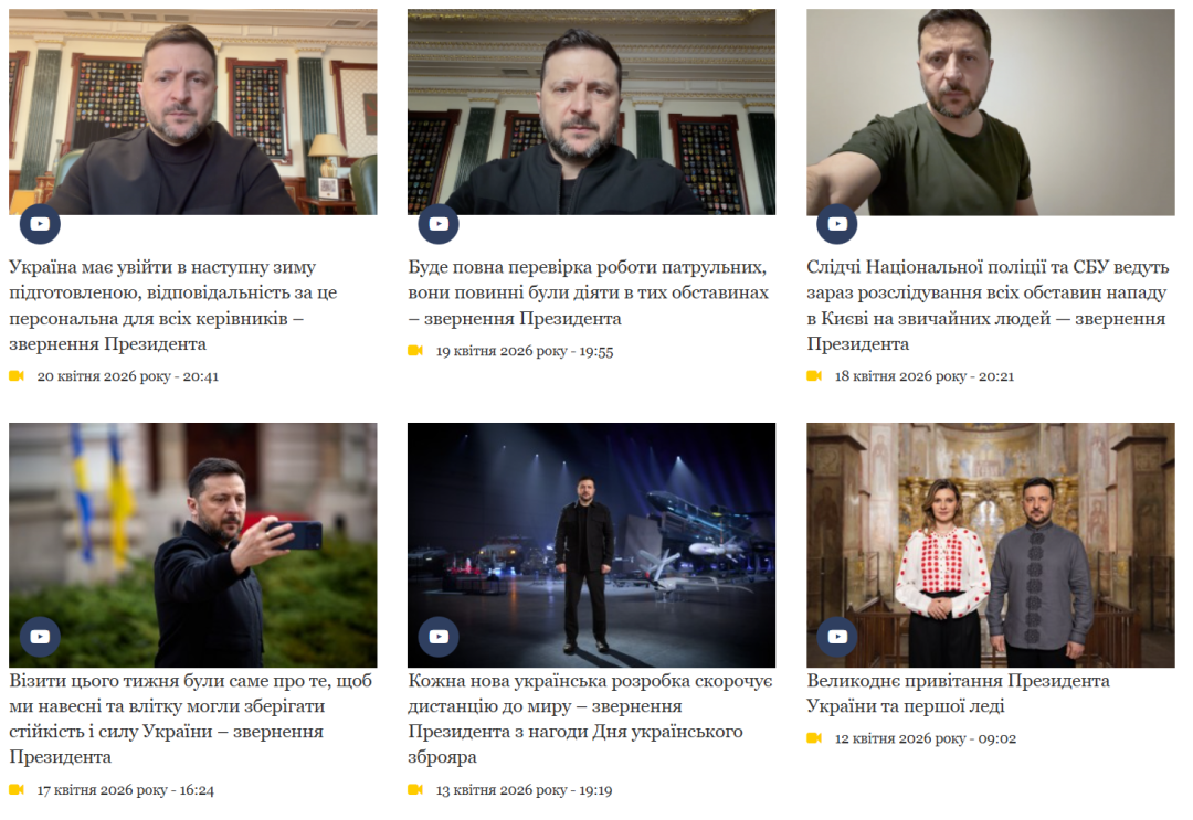 It should also be noted that on April 16, 2026, the President of Ukraine did not publish any video addresses. No such videos dated that day appear on the official website of the head of state.