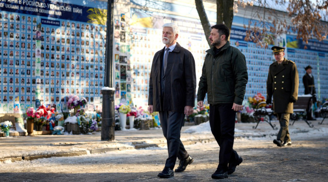 Presidents Volodymyr Zelensky of Ukraine and Petr Pavel of the Czech Republic paid tribute to the fallen Ukrainian defenders at the Wall of Remembrance in Kyiv.