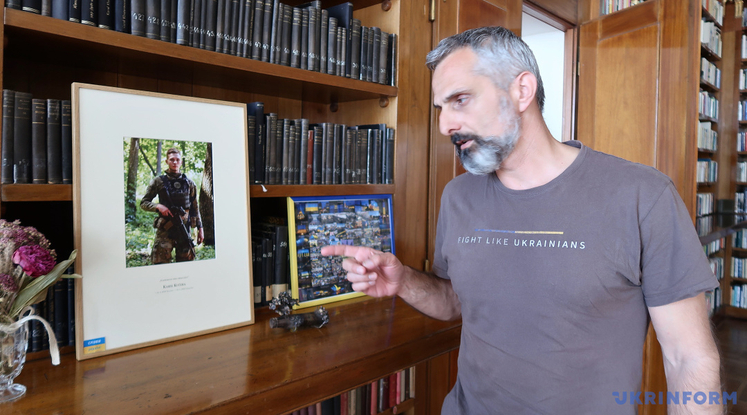 His stance is symbolized by a Ukrainian flag displayed in the window of his office within the Prague Castle complex. The interview itself took place in the presidential library—once used by the first President of Czechoslovakia, Tomáš Garrigue Masaryk, who founded the Military Office in 1919. In a place of honor there, Foltin pointed to a photograph of Czech volunteer Karel Kučera, who gave his life for Ukraine’s freedom and was posthumously awarded a state honor for battlefield heroism by President Petr Pavel.