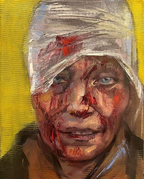 A month later, the painting First Face of War, created from the photograph by artist Zhenya Gershman, was sold at a U.S. auction by Heritage Auctions for $100,000. The proceeds were donated to support the Armed Forces of Ukraine.