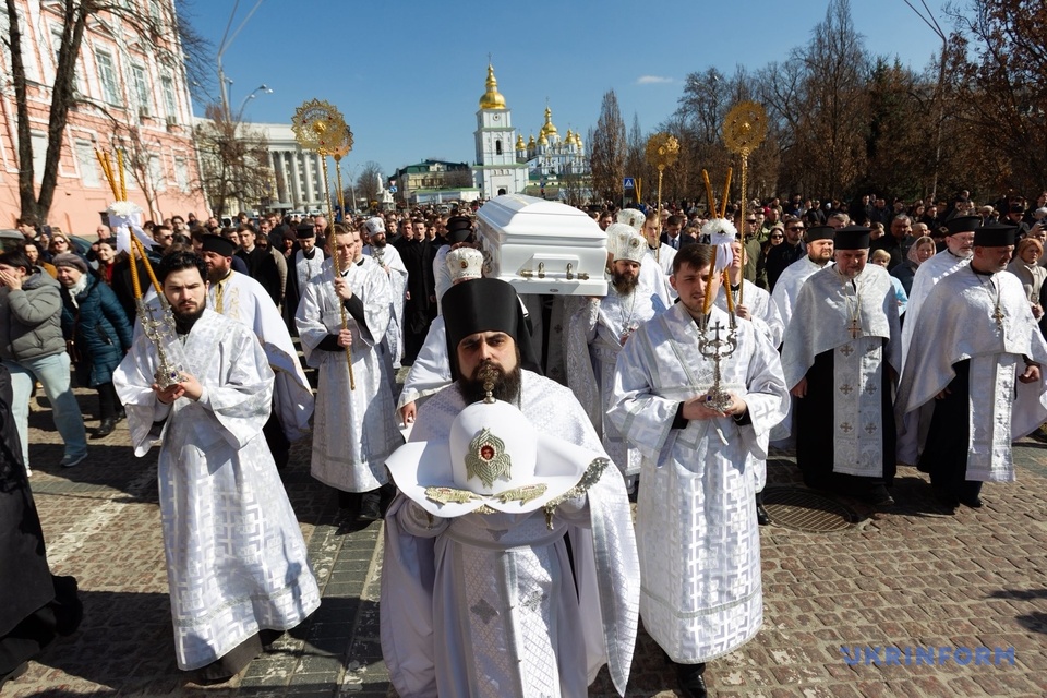 Earlier, on the morning of March 22, Metropolitan Epiphanius of the Orthodox Church of Ukraine led a memorial service at the St. Michael's Golden-Domed Monastery. Hundreds of people attended to pay their respects.