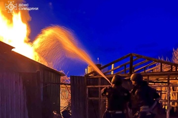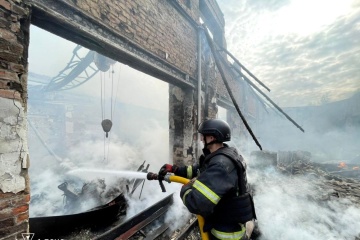 Rescue workers extinguished a large-scale fire that broke out as a result of a massive nighttime attack on the Hlukhiv community in the Sumy region.