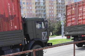 Russian occupiers are using military tractors and trucks to transport shipping containers from the Port of Rostov-on-Don to the Port of Berdiansk; it is not yet known what is inside the containers.