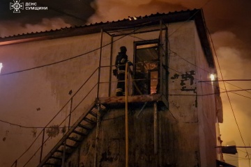 The State Emergency Service of the Sumy region showed fires that broke out as a result of Russian strikes last night; buildings burned in four communities.