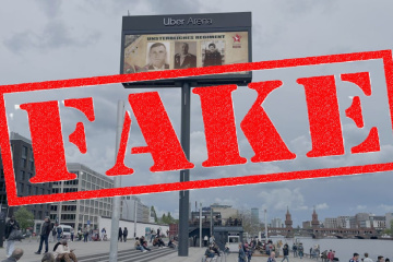 Propagandists doctored footage allegedly showing Soviet soldier portraits on LED screens in the German capital