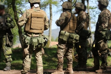 Ukraine's military personnel in the United Kingdom are undergoing training to conduct positional and anti-ambush combat operations in a wooded area.